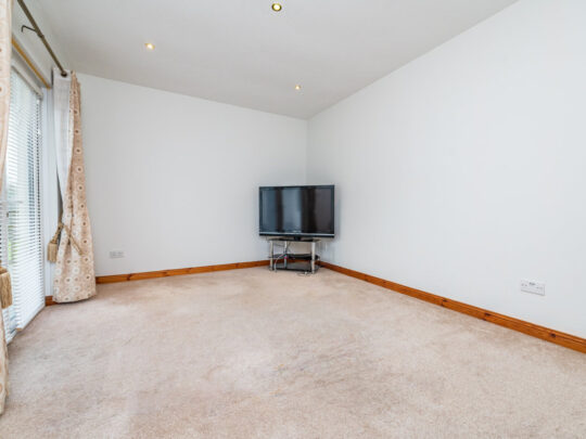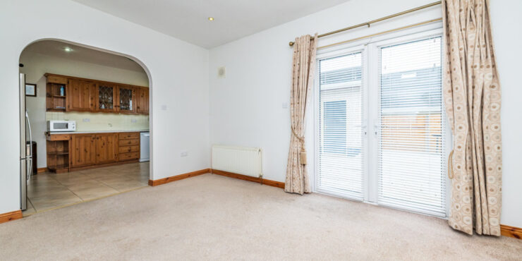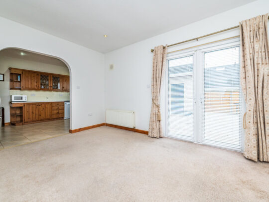 Family Room: 4.65m x 3.45m carpeted flooring, downlighters to ceiling, double French doors to patio garden