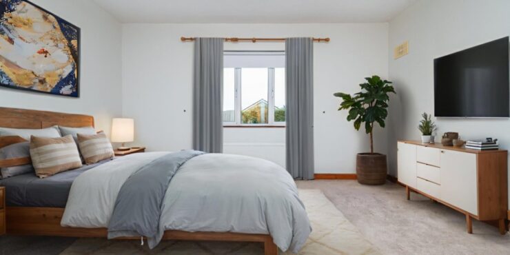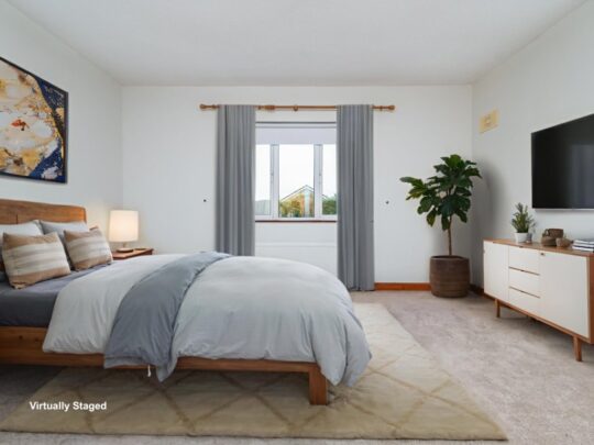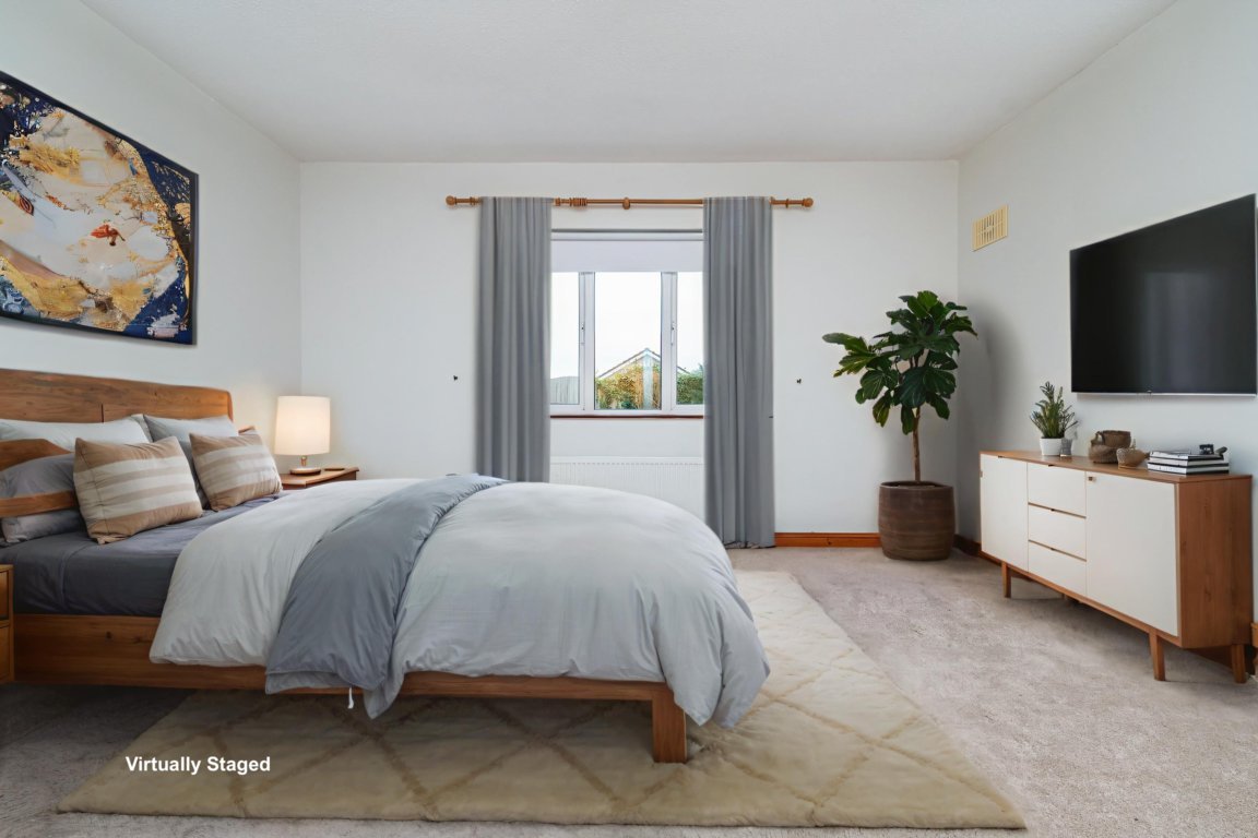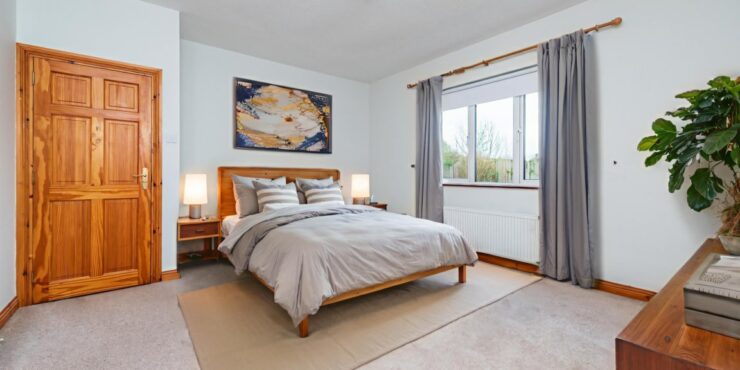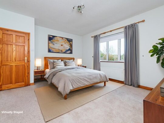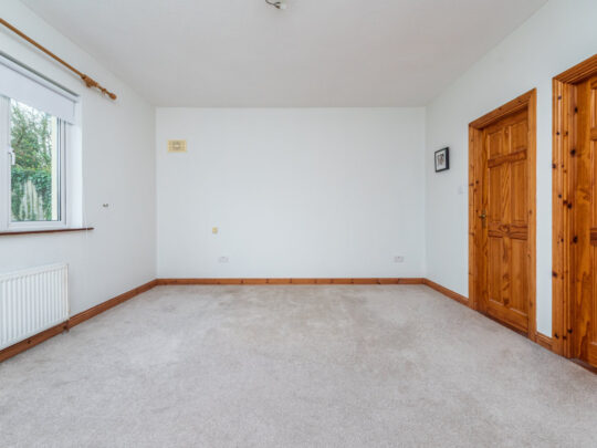 Bedroom 1 (Master – Rear): 4.65m x 4.15m Master double bedroom with carpeted flooring, door to