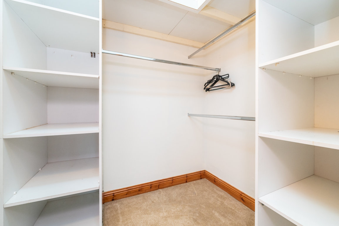 Walk in Wardrobe: 2m x 1.65m Fully fitted with bespoke custom-made shelving and hanging space, carpeted floor