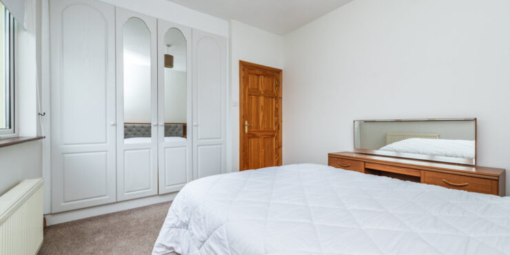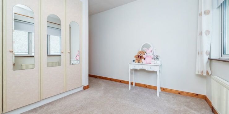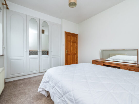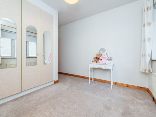 Bedroom 4 (side): 4m x 2.45m double bedroom with carpeted flooring & fitted wardrobes