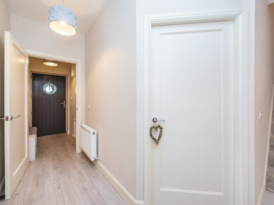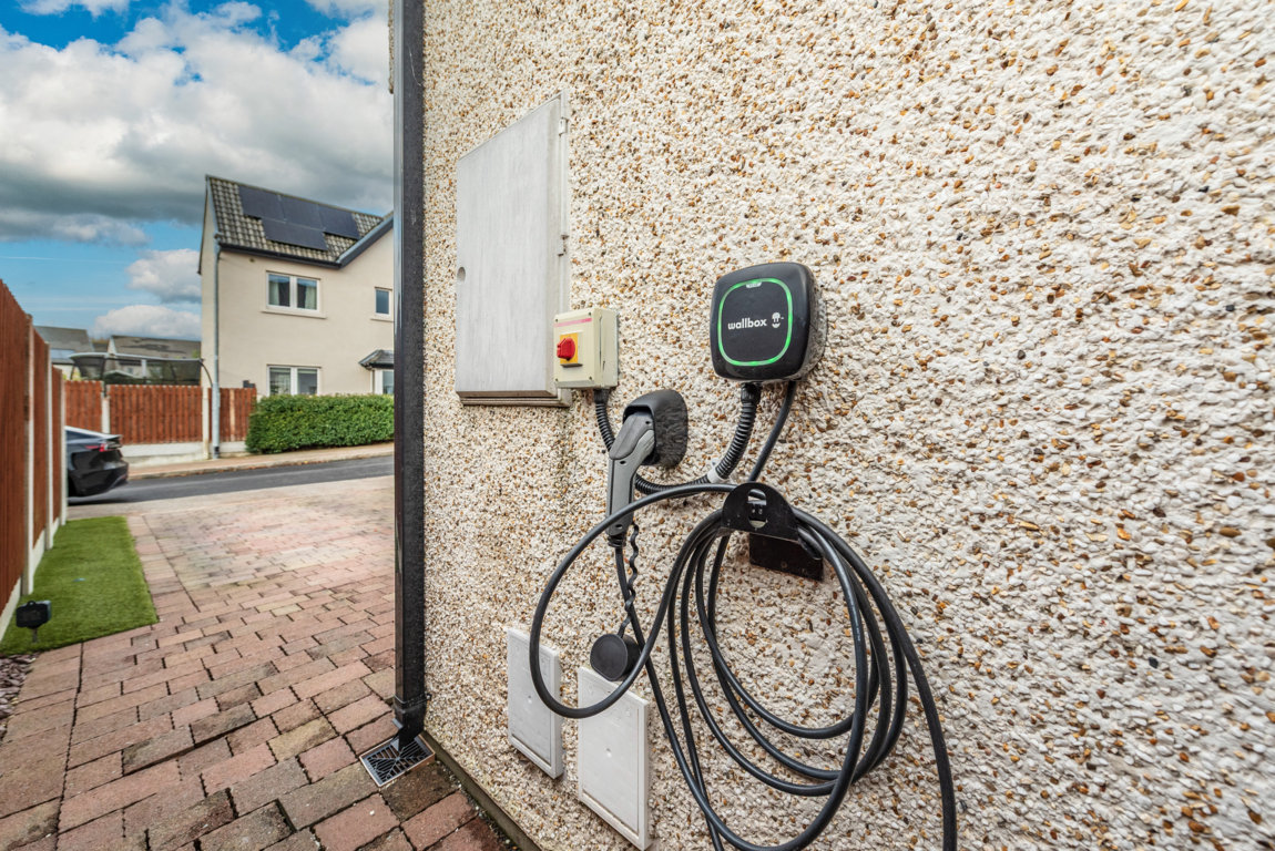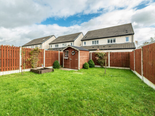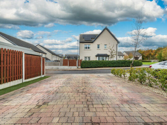 - Large cobble lock double width driveway to the front – mature garden to the rear with Barna garden included. Outside lighting.