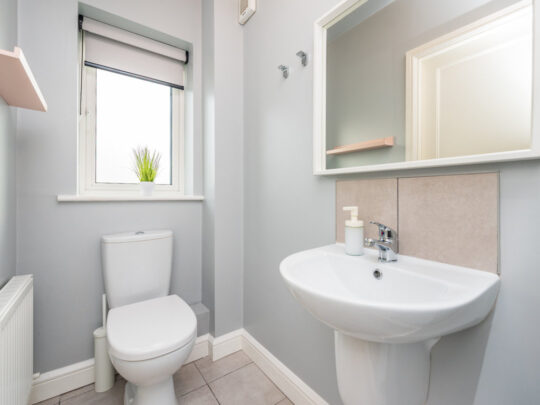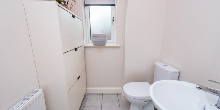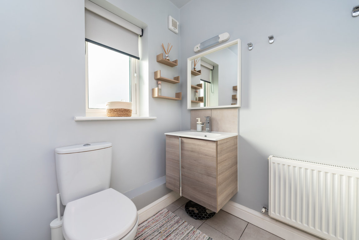 Downstairs WC: with tiled floor, white suite consisting of wc, and whb (part cloakroom).