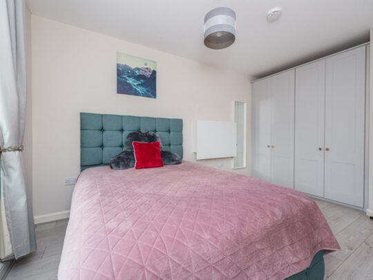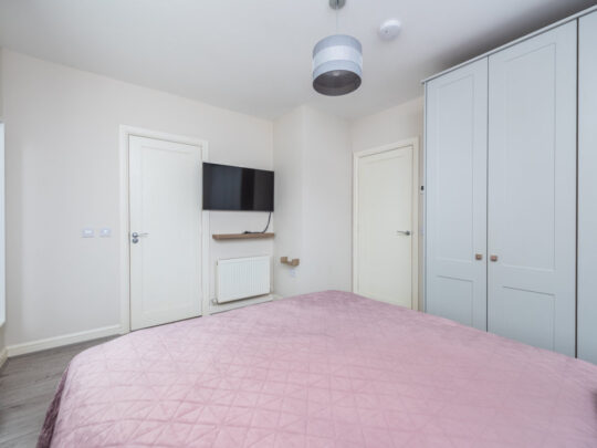 Bedroom 2: built in wardrobes, drawer space and shelving. Tv point in this room.