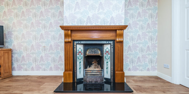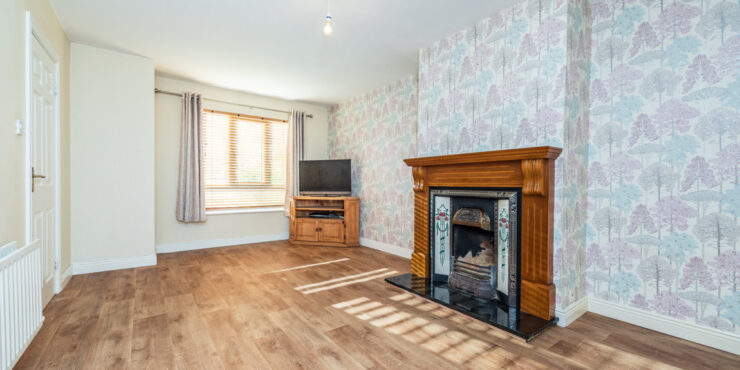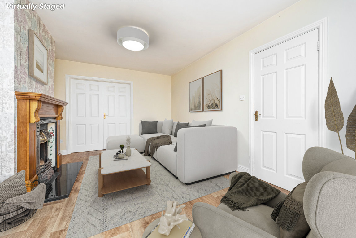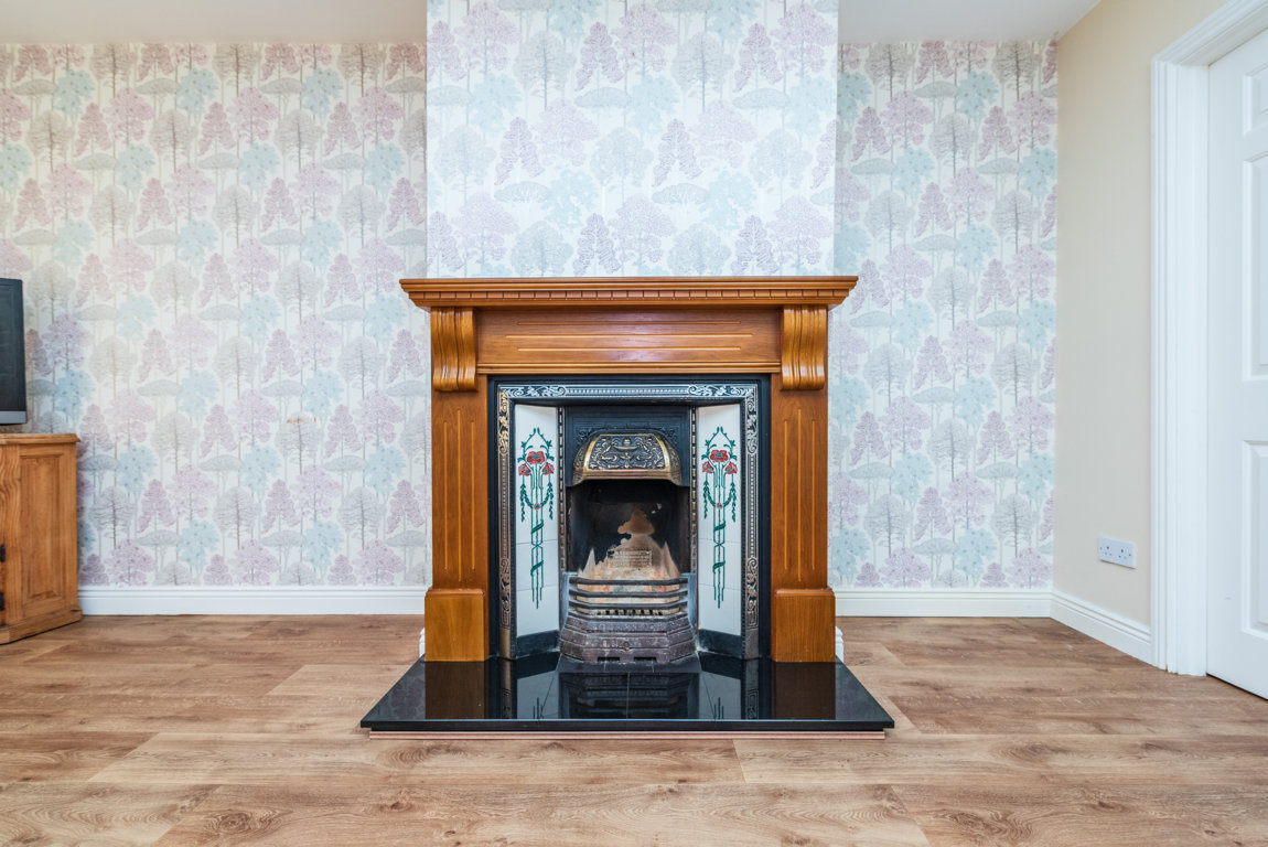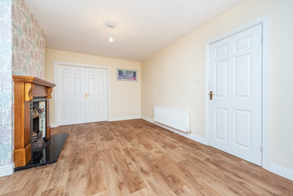 Living Room: feature open fireplace, tv point and double doors to