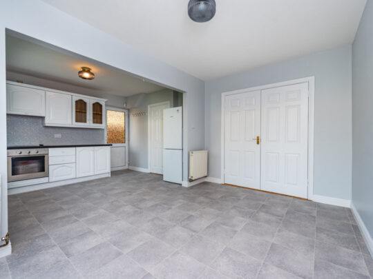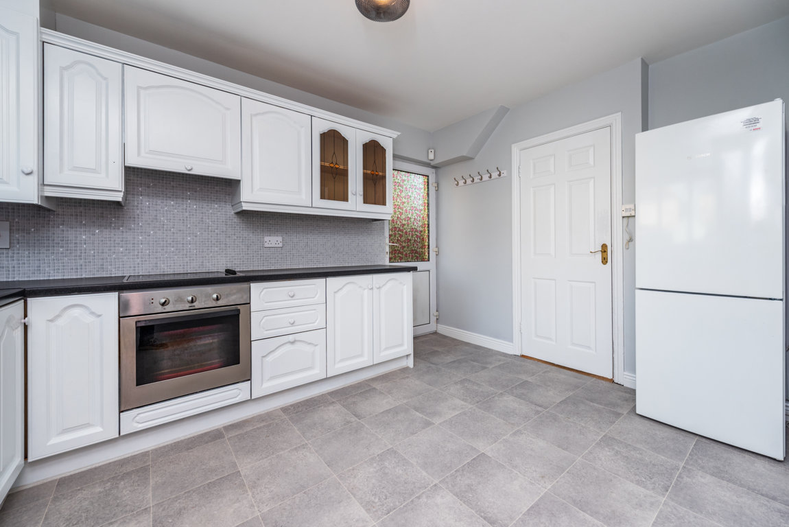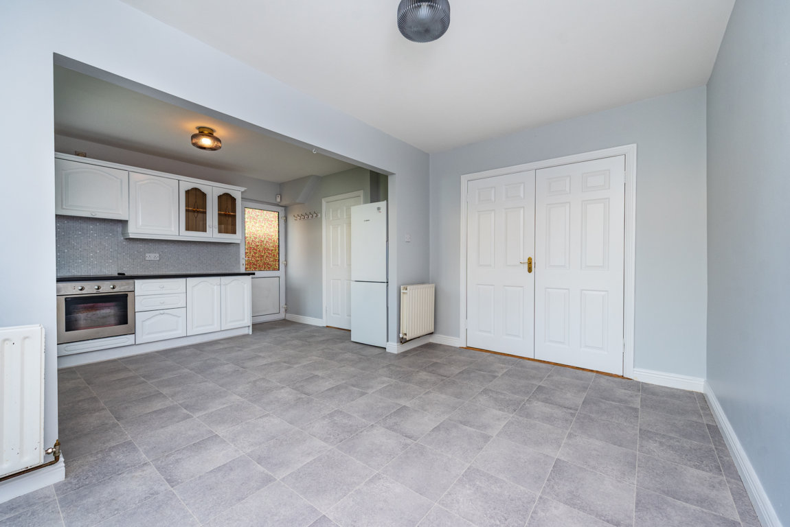 Kitchen/Dining spacious area with built in units and including oven hob, extractor fan and fridge freezer.