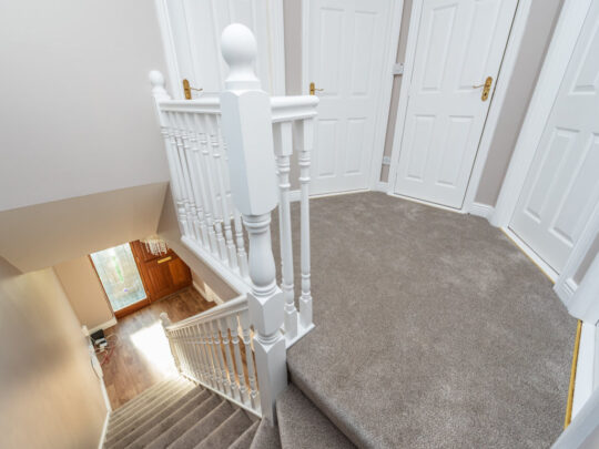 Landing Spacious landing area with access to attic hatch and fully shelved hot-press.