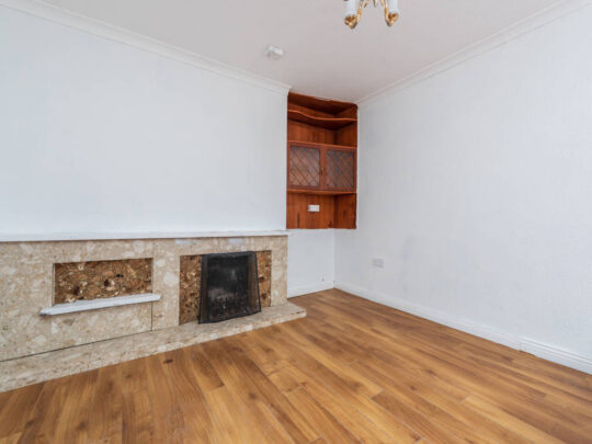 – Living Room: Cosy space with an open fire and built-in shelving