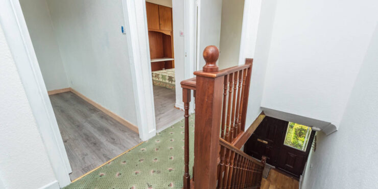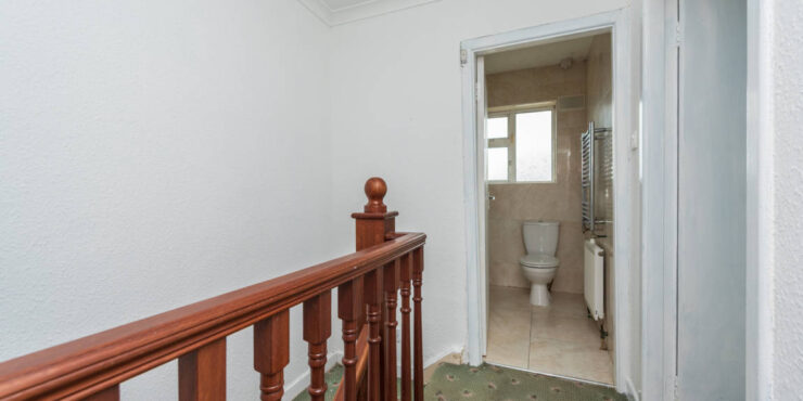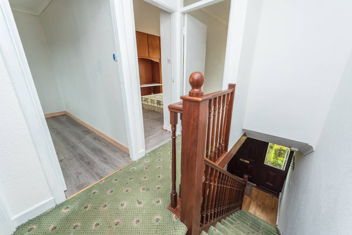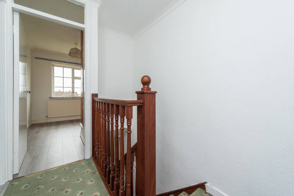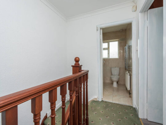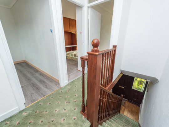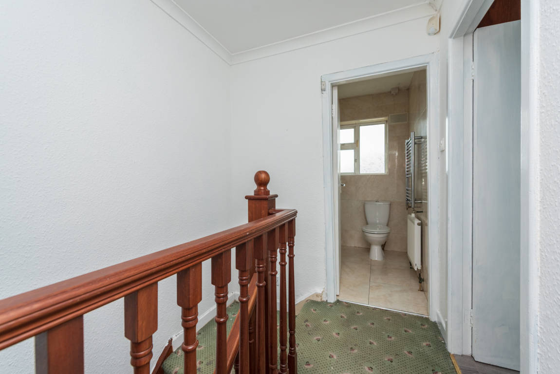 Landing: Carpeted stairs and landing, attic hatch