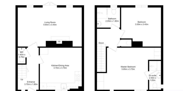 Accommodation comprises: Entrance Hall, Downstairs W.C., Sitting Room, Kitchen/Dining Room, Upstairs: 2 Bedrooms (master en-suite) and family Bathroom.