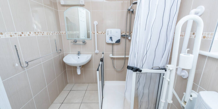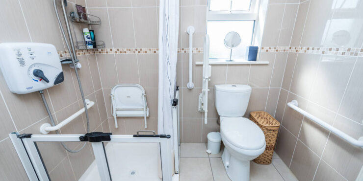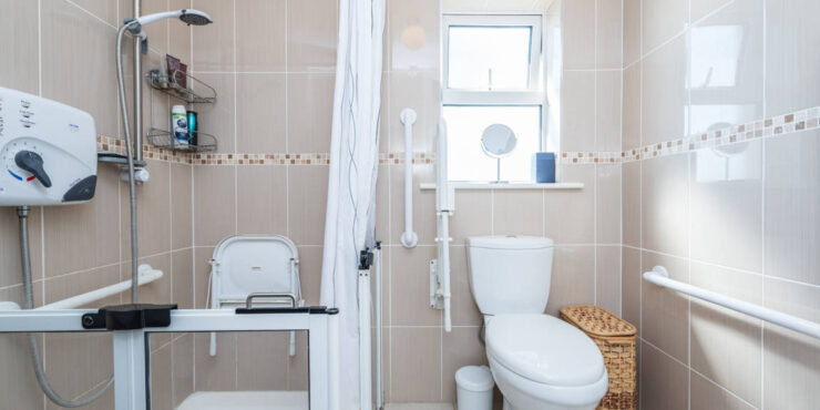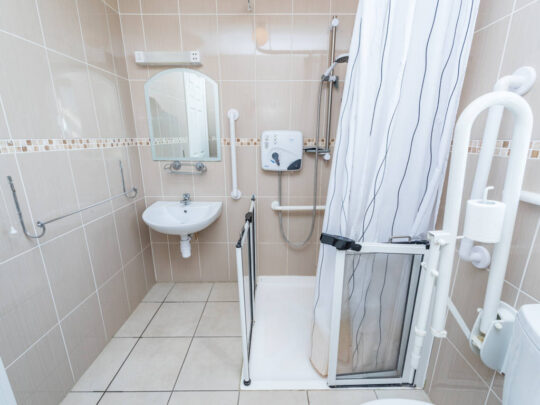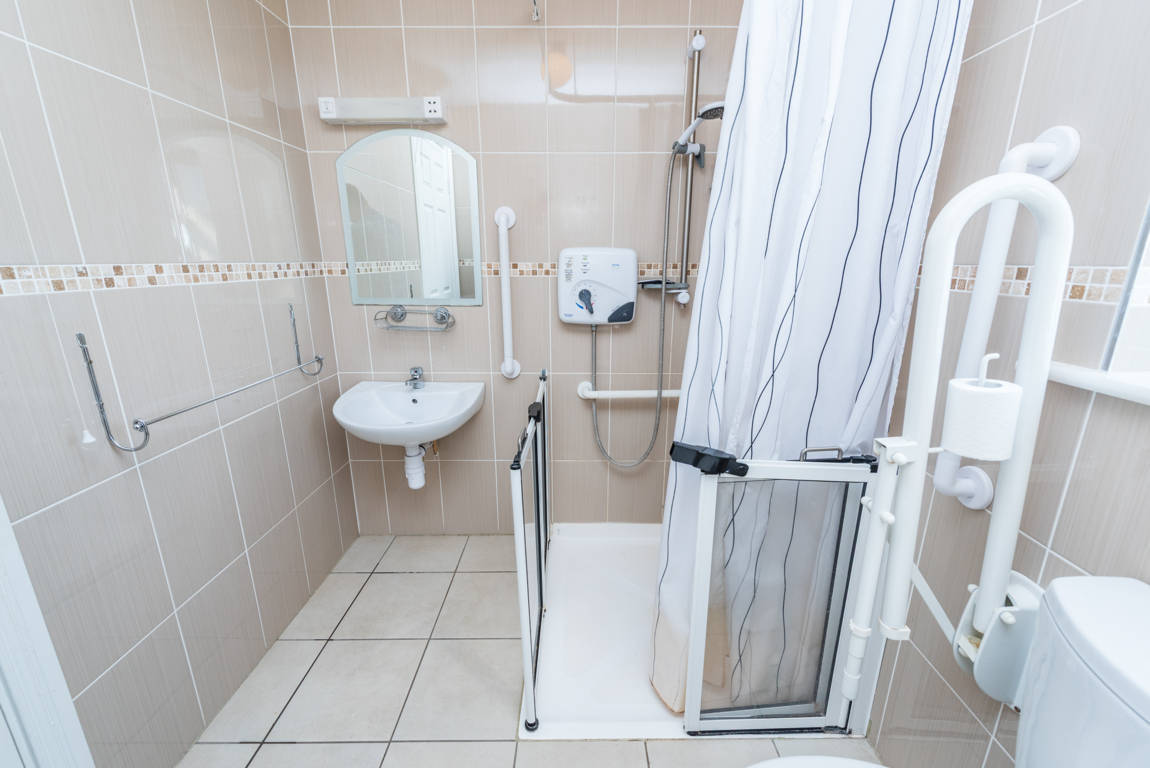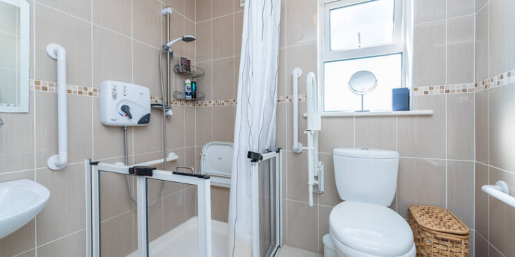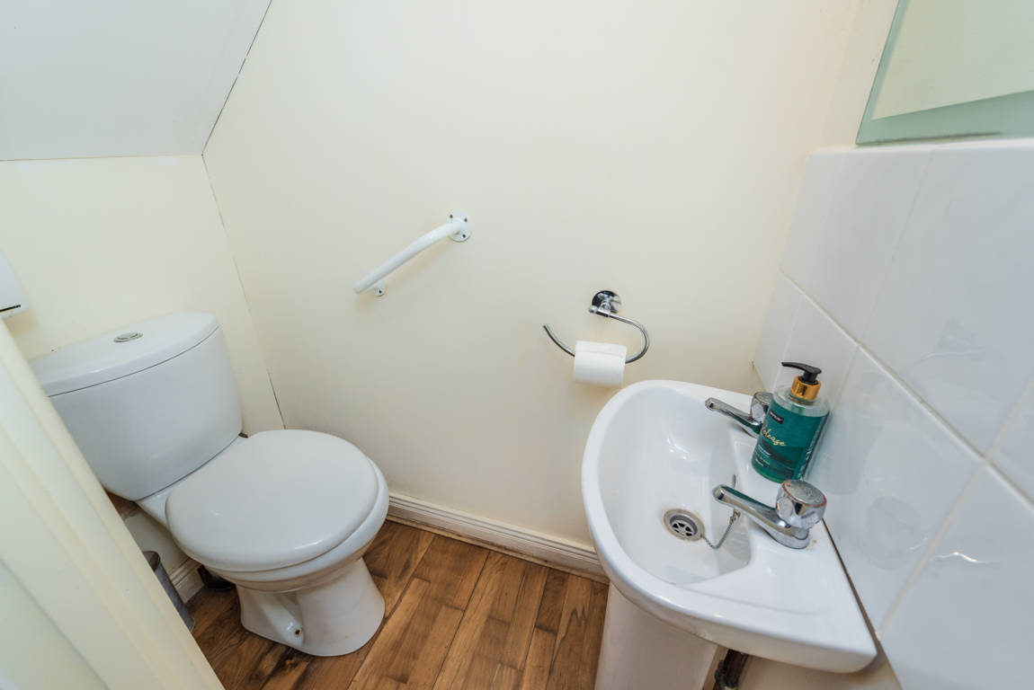 En-Suite: Fully tiled, W.C., W.H.B, and Mira shower in enclosed shower & window.