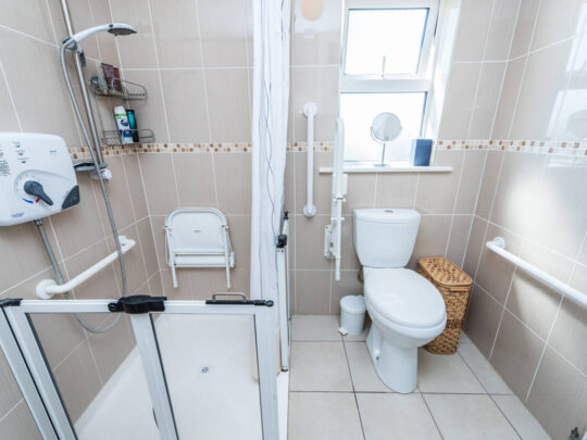 Bathroom: Fully tiled with Suite consisting of W.C. W.H.B and shower (Triton).