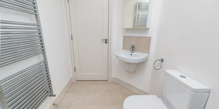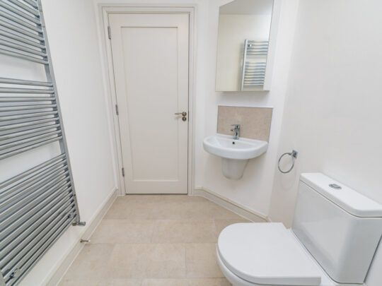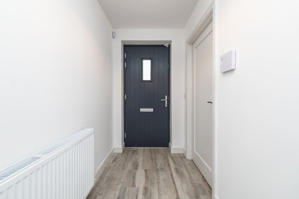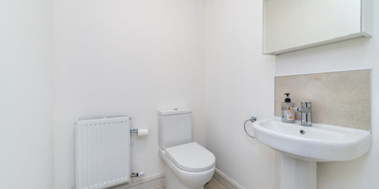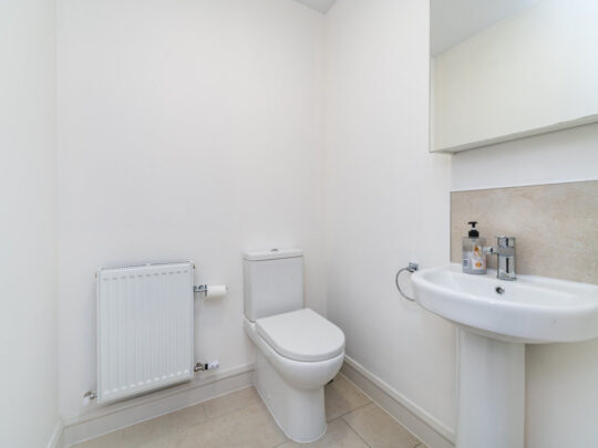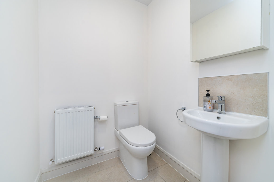 Entrance Hall: smart wood effect tiled flooring, alarm panel, radiator cover Guest WC: tiled floor, w.c., part tiled walls, pedestal w.h.b, window.