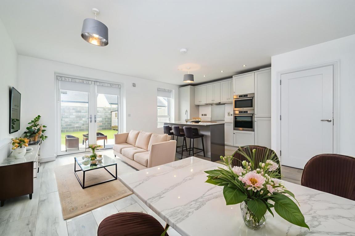 The heart of the home is a sleek, contemporary kitchen equipped with premium appliances, flowing naturally toward a south-facing rear garden. Outside, the extended paving and manicured lawn create an ideal setting for summer hosting. Upstairs, there are 3 generous double bedrooms—including a master suite with bespoke wardrobes—provide a quiet retreat. With high-speed fibre broadband and the world-class shopping of Kildare Village just a stroll away, No. 33 offers a lifestyle of unparalleled convenience.