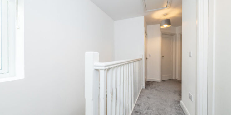 Gallery Landing: Carpeted hallway & stairs, window over stairs, pull down stira to attic (Which can be converted to further living space & is partially floored and has electricity) with large hotpress.
