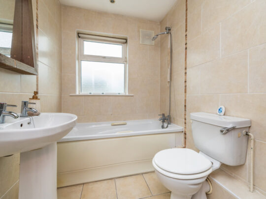 Bathroom: with bath, (with overhead shower) wc, and whb. Fully tiled.